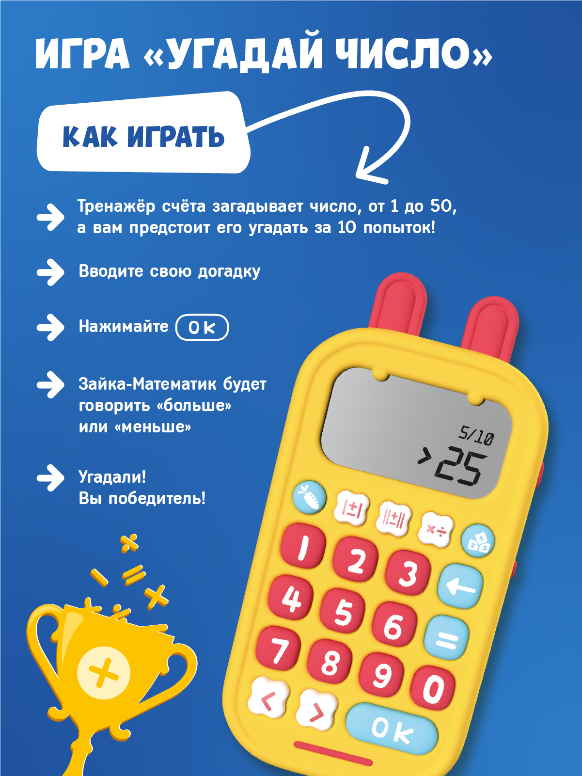 - Сложение, вычитание, деление, умножение и сравнение чисел, чтобы как следует поучиться, а также игра «Угадай число», чтобы повеселиться, отдохнуть и даже посоревноваться со взрослыми – на равных условиях!