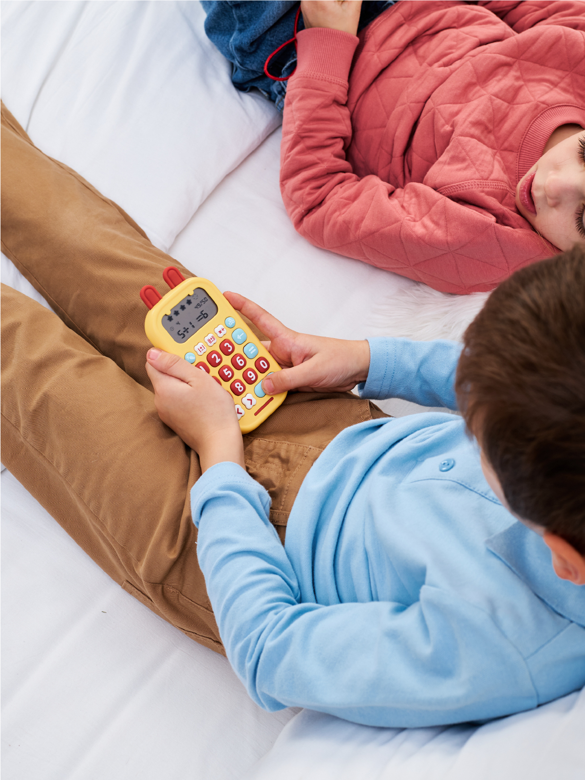 Знакомьтесь, друзья, – это Зайка-Математик alilo, интерактивная игрушка, обучающий тренажёр или математический тренажёр для развития арифметических способностей у ребёнка! Попробуйте детский обучающий планшет от alilo чтобы обучение математике шло в игровой, нескучной форме с понятным и приятным интерфейсом. Встроенная электронная игра Зайки-Математика поможет научиться складывать и вычитать, делить и умножать, запоминать, сравнивать числа и решать самые разные задачи: как простые, так и посложнее.