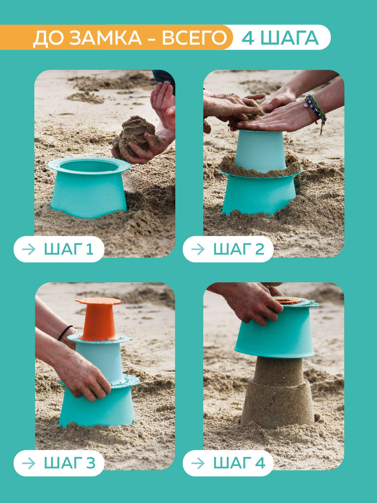 – В 1 наборе – 3 формы разных размеров. Из песка или снега постройте башню, замок, целый город!