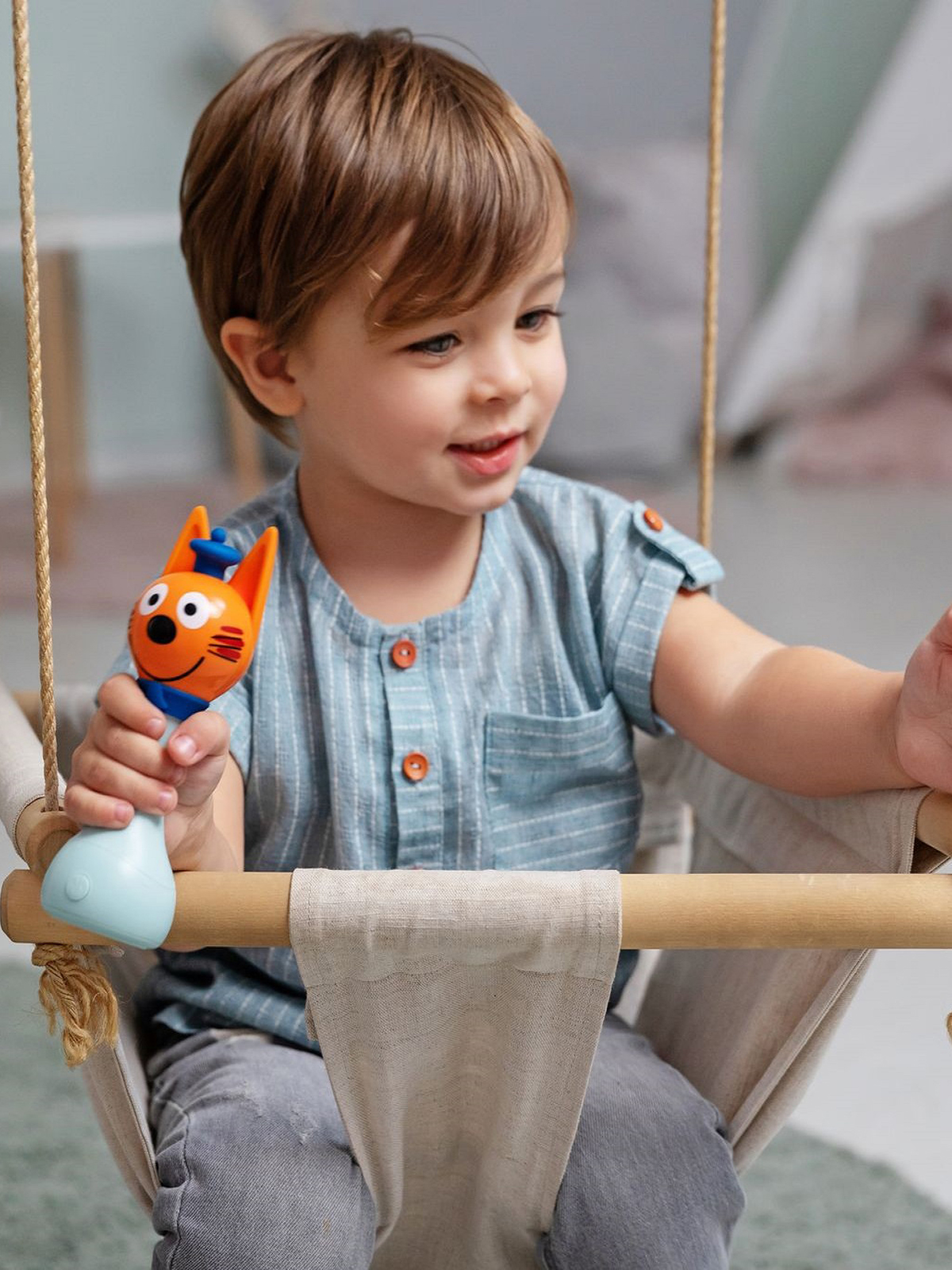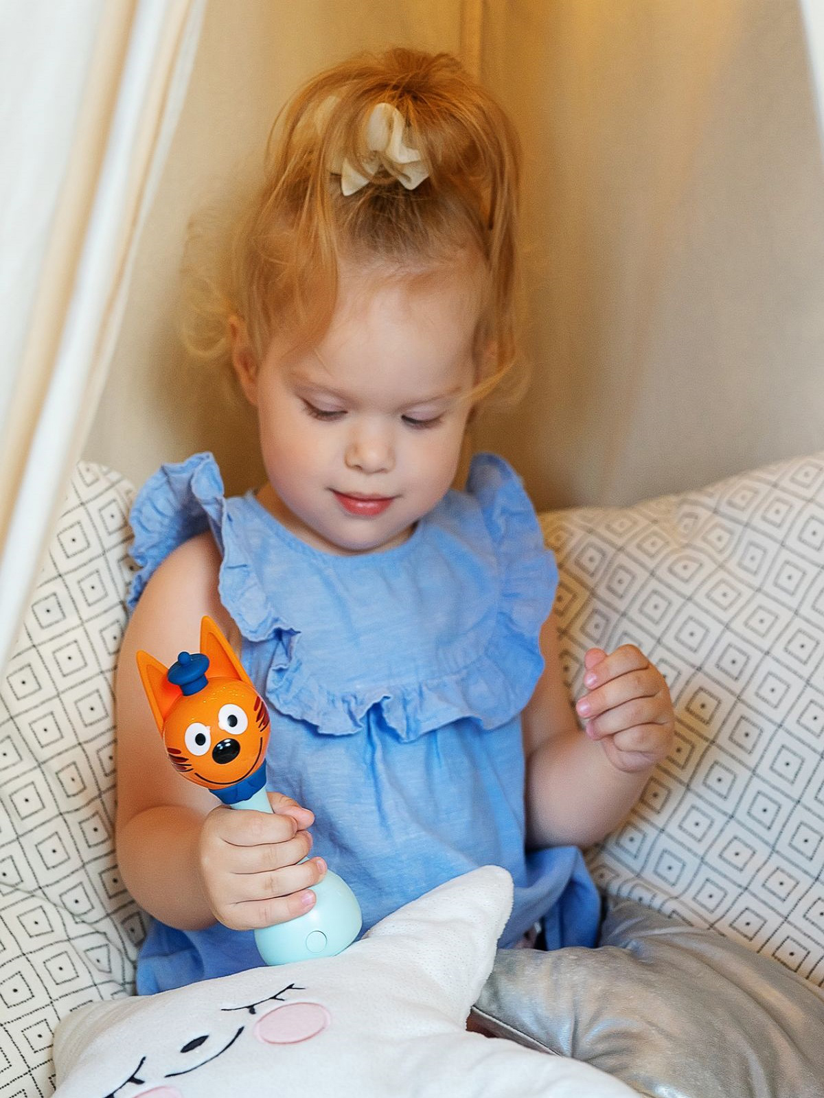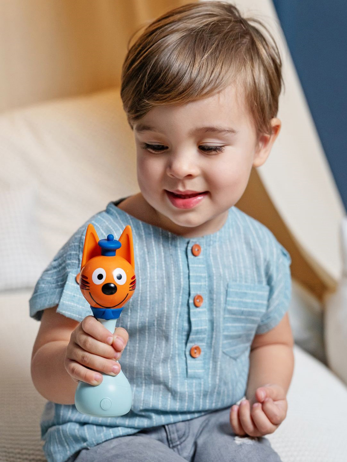 — Коржик потрясающий. Если его потрясти, он воспроизведёт аж 50 звуков из «Трёх котов» в режиме погремушки.