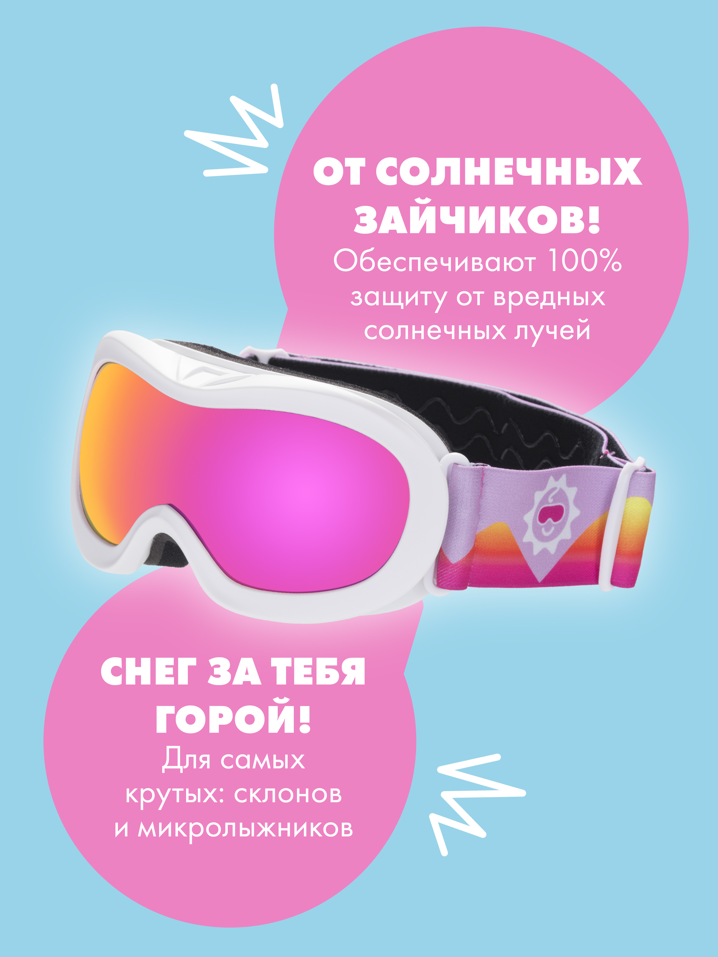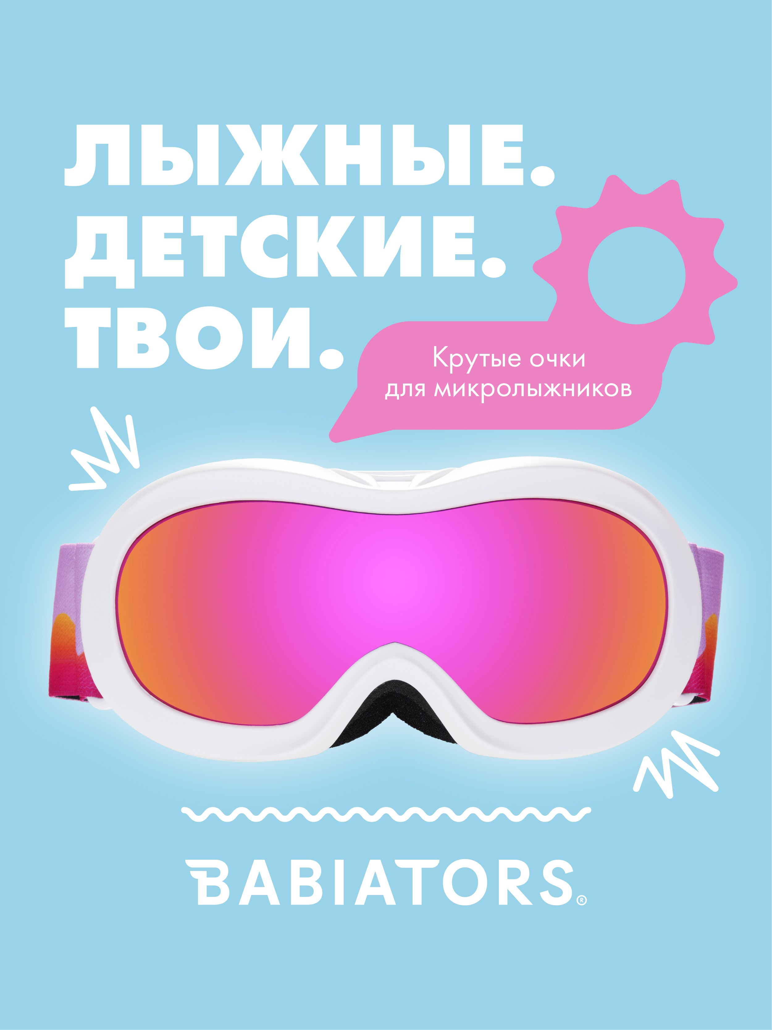 Лыжные очки Babiators с лёгкой оправой классического белого цвета идеально дополнят любой образ. Двойной регулируемый противоскользящий ремешок безопасно и надёжно удерживает очки вашего ребёнка на голове во время катания по склонам, а ремешок с классным разноцветным рисунком гарантирует, что ваш ребёнок будет выглядеть самым стильным микролыжником из всех! Зеркальные линзы в цветах фуксия и арктический синий, устойчивые к царапинам и ударам, разбавят радужным цветом лаконичность белого снежного дня.