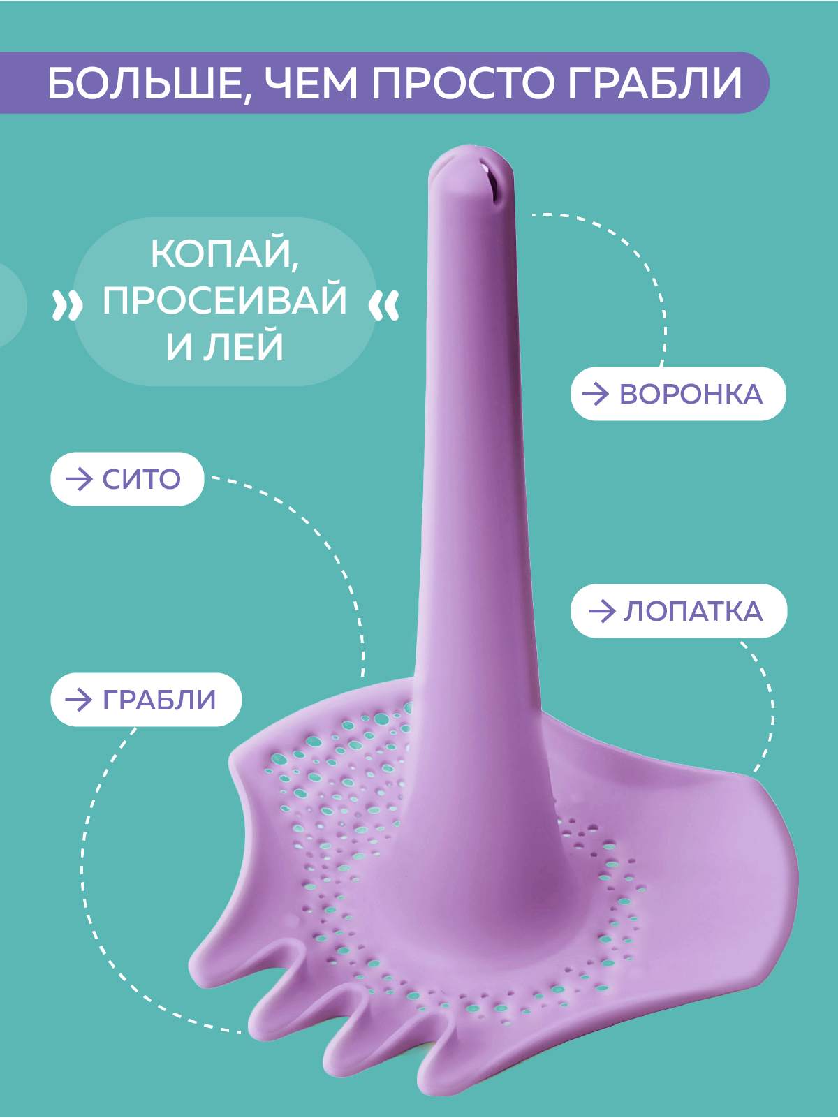 – 4 главных инструмента в 1: сито, грабли, лопатка и воронка.