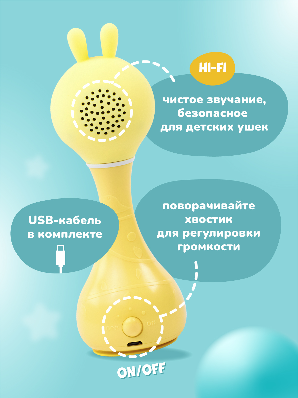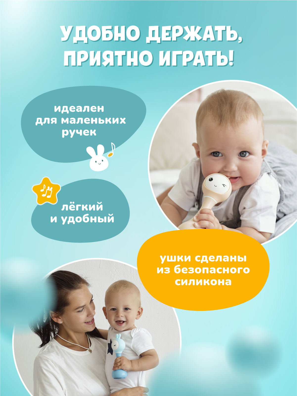 — Звуки окружающего мира для новорождённых. Зайка знает более 50 разных звуков: животные, музыкальные инструменты, природа и многое другое. Стоит только потрясти!