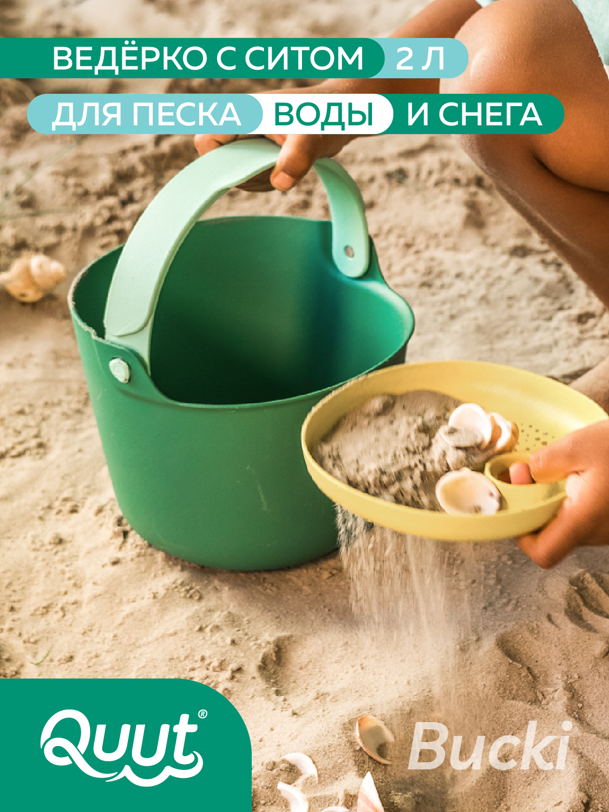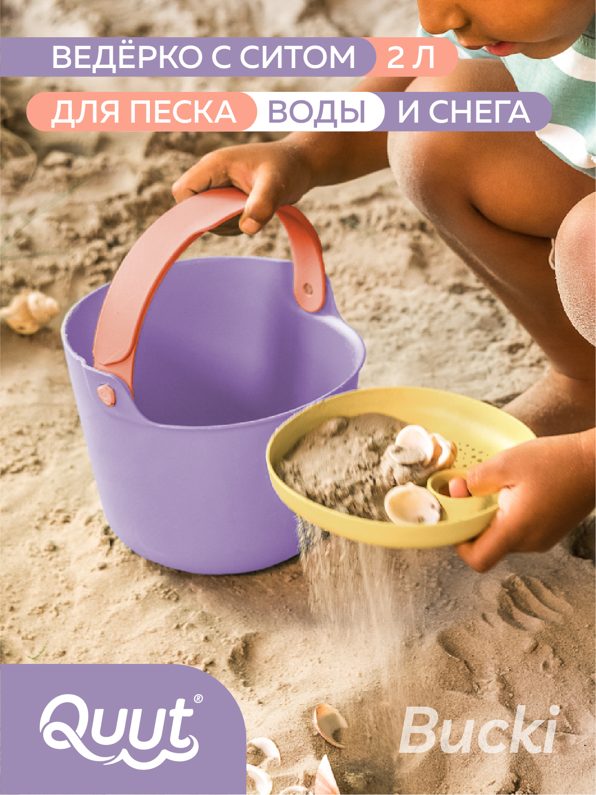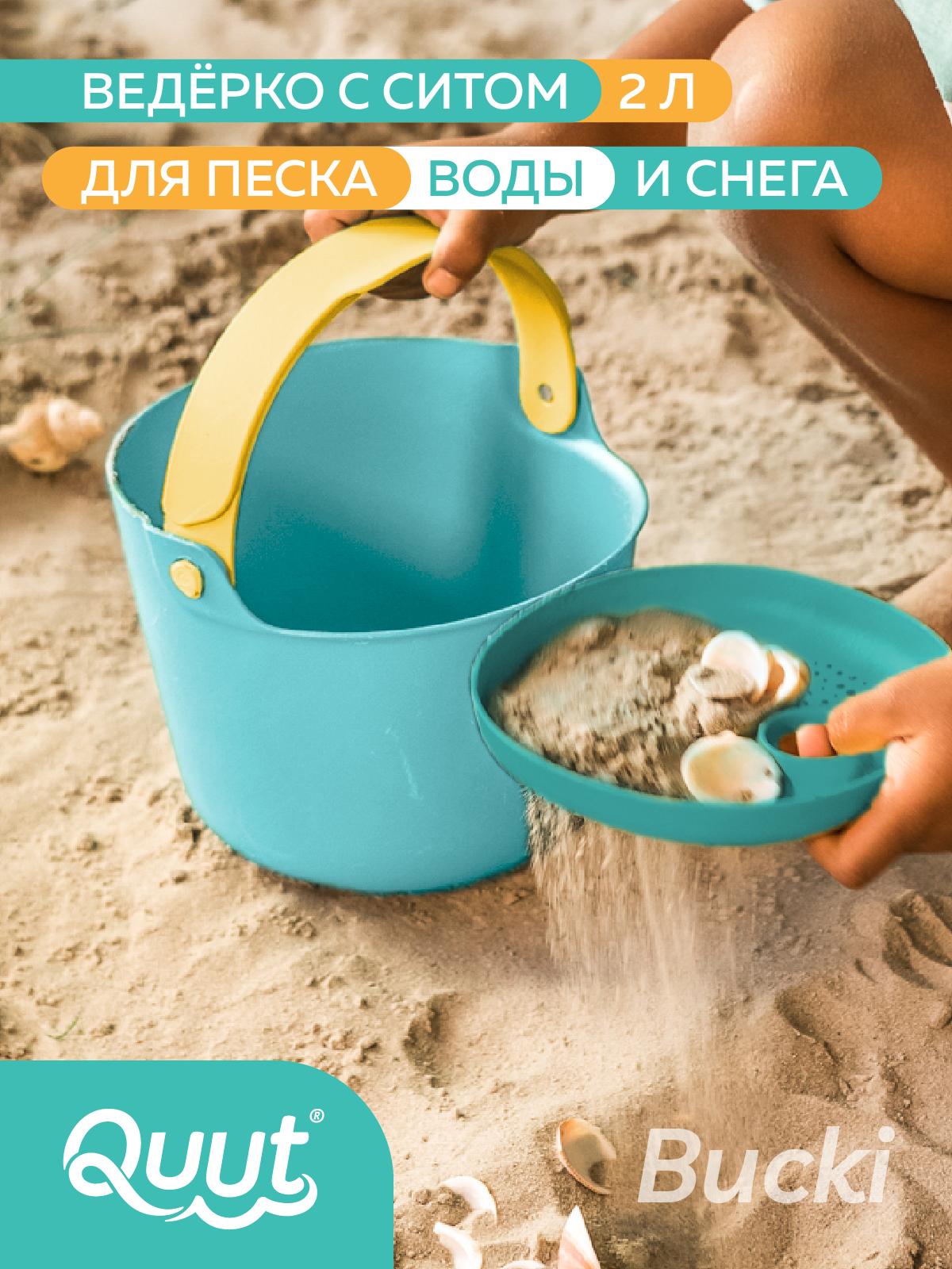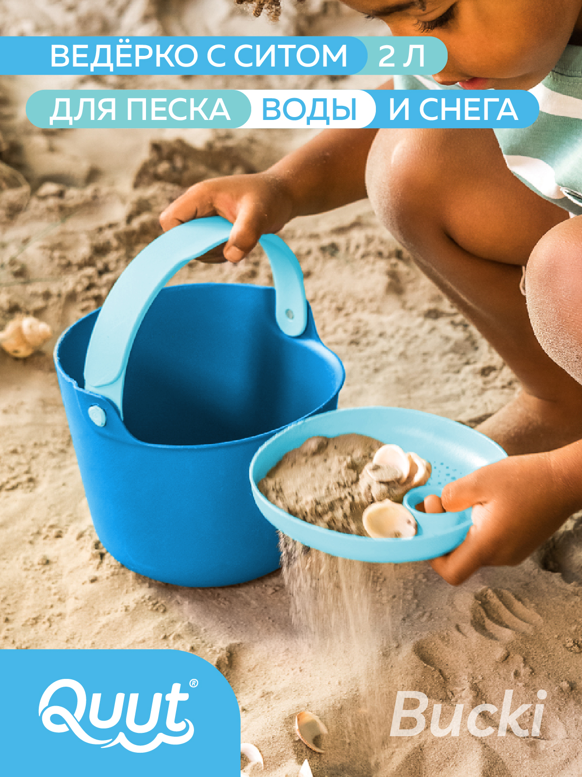 Bucki – идеальное ведро с ситом для мальчиков и девочек: собирайте ракушки, камушки, цветы, стройте песчаные башни, переносите воду и многое другое. Скучать не придётся!